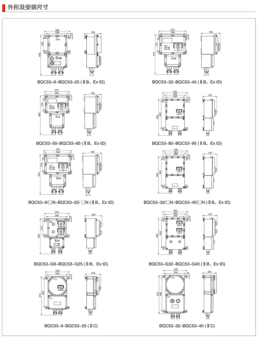 BQC53系列防爆磁力起动器(IIB、IIC、Ex tD)