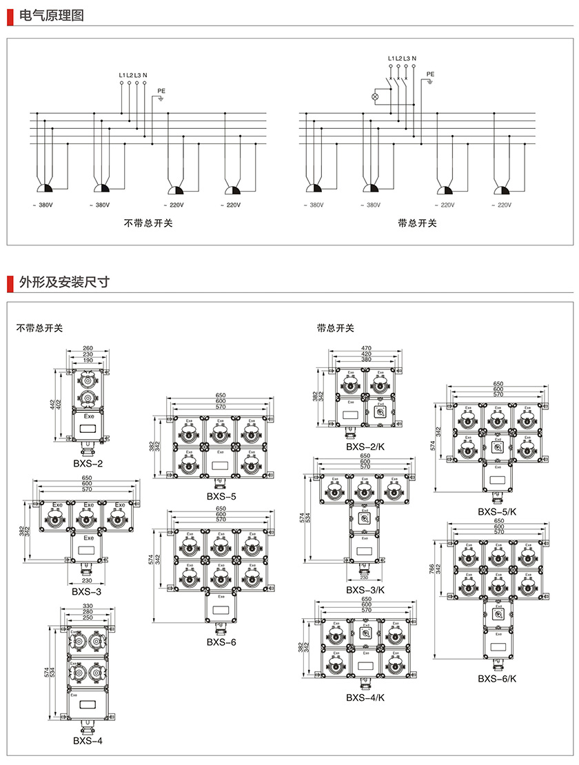 BXS系列防爆检修电源插座箱(IIB、IIC、Ex tD)