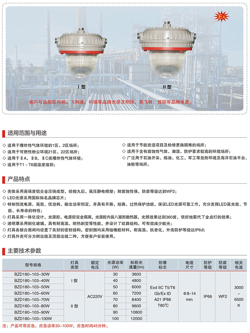 BZD180-103系列防爆免维护LED照明灯(IIC)