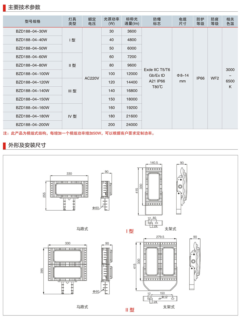 BZD188-04系列防爆免维护LED泛光灯(IIC)