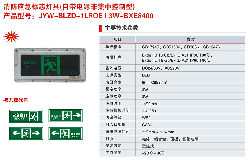 JYW-BLZD-1LROE I 3W-BXE8400系列消防应急标志灯具