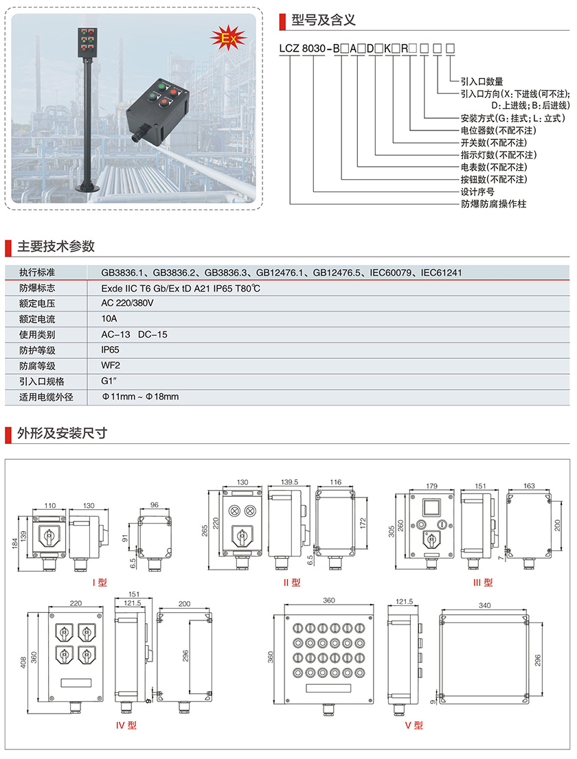 LCZ8030系列防爆防腐操作柱(IIB、IIC、Ex tD)